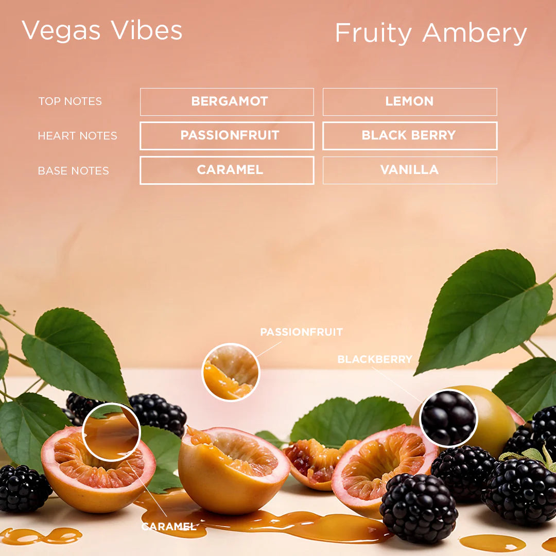 To the unstoppable soul of a partygoer, Vegas Vibes basks the intoxicating zest of the City with a cleverly crafted arrangement of scents. A fusion of sensual top notes with tranquillizing middle and base notes makes this fragrance irresistibly essential. What happens in Vegas doesn't have to stay in Vegas; grab a whiff of it through Vegas Vibes.